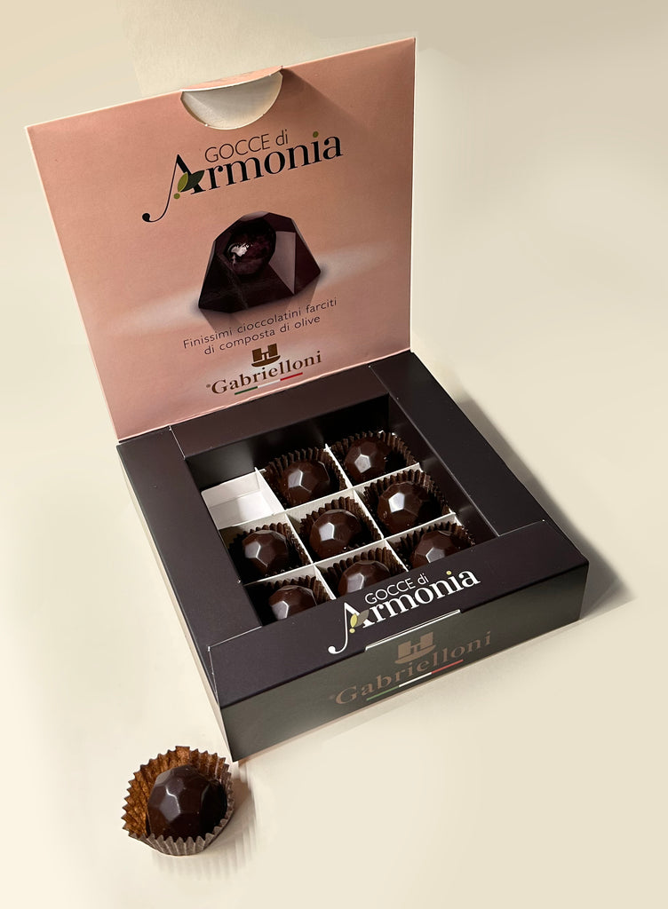La perfetta combinazione della marmellata di olive con il cioccolato al 75% di cacao fa di Gocce di Armonia un piacere da concedersi a fine pasto o una piccola ricarica in qualsiasi momento della giornata.